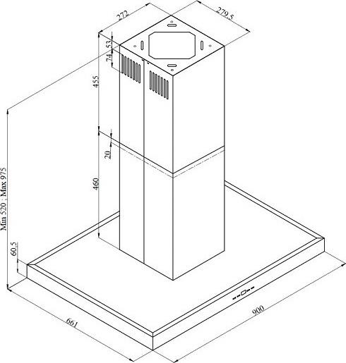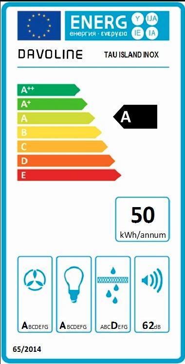 Απορροφητήρας νησίδα Davoline Tau Island με απορροφητικότητα 765 m3/h, ετήσια ενεργειακή κατανάλωση 48.5 kwh και με φωτισμό 2x3 W Led.