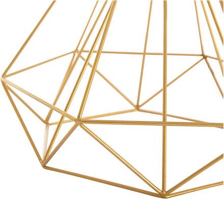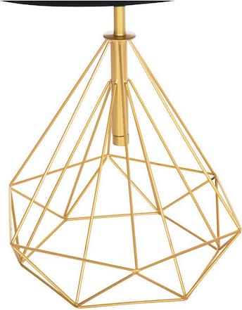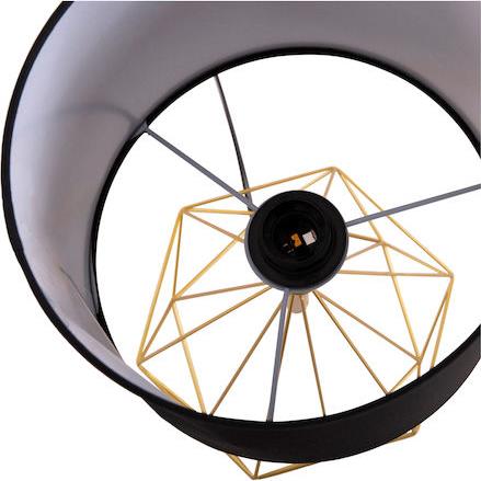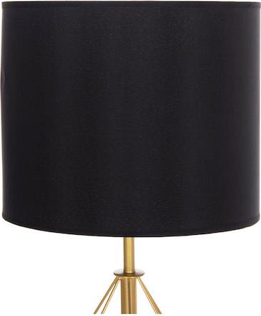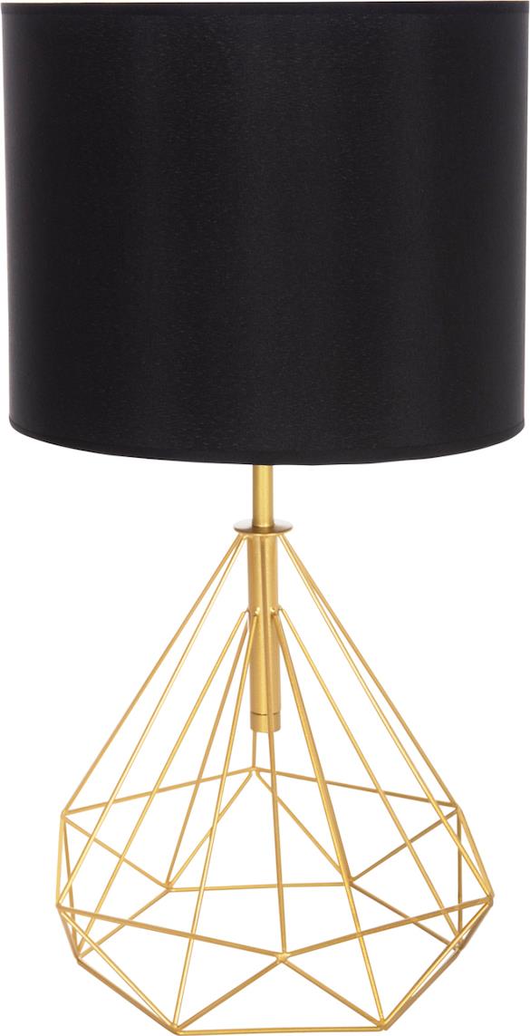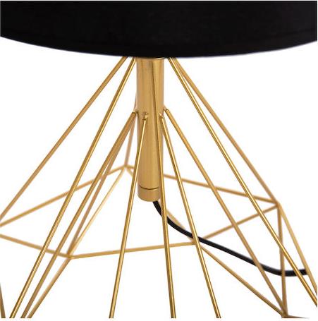Φινέτσα και μοντέρνα γραμμή συναντώνται σε αυτό το επιτραπέζιο φωτιστικό. Βάση και κολώνα έχουν δώσει την θέση τους όμορφα σε ένα χρυσό μεταλλικό πλέγμα σε σχήμα πολύγωνης πυραμίδας και στην κορυφή του κάθεται το μαύρο κυλινδρικό καπέλο, δημιουργώντας ένα σύνολο που είναι η επιτομή του μοντέρνου design εσωτερικών χώρων. Ειδικά, το μαύρο χρώμα του τυμπάνου πραγματικά δίνει την εντύπωση της πολυτέλειας χωρίς όριο. Αυτό το φωτιστικό είναι λιτό, κομψό και βολικό σε διαστάσεις παρέχοντας αμέτρητες δυνατότητες «δεσίματος» με την υπόλοιπη διακόσμησή σας. Εκτός από διάφορα δωμάτια του σπιτιού σας, μπορεί, επίσης, να ταιριάξει και σε επαγγελματικούς χώρους όπως εστιατόρια, καφέ, ξενοδοχεία κτλ.