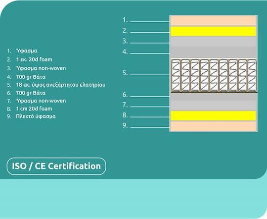 Στρώμα με Pocket Springs σε διάσταση διπλού στρώματος και διπλής όψης.Το συγκεκριμένο στρώμα είναι ανατομικό και ενσωματώνει την τεχνολογία ανεξάρτητων ελατηρίων που είναι ίσως ο πιο δημοφιλής τύπος στρωμάτων νέας τεχνολογίας. Η καρδιά του στρώματος αποτελείται από πολλά ανεξάρτητα ελατήρια, εγκλωβισμένα σε ένα κυλινδρικό πανί pocket. Κάθε ελατήριο είναι σταθερά κολλημένο με τα γειτονικά ελατήρια. Αυτή η τεχνική δίνει την δυνατότητα στα ελατήρια να κινηθούν ανεξάρτητα των διπλανών τους. Αυτή η περίπλοκη τεχνική καθιστά τα στρώματα pocket προσαρμόσιμα στο σχήμα του σώματος.Τεχνικά χαρακτηριστικά: