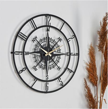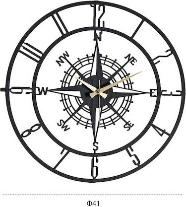 Ρολόι τοίχου σε μαύρη απόχρωση με χρυσές λεπτομέρειες στους δείκτες.