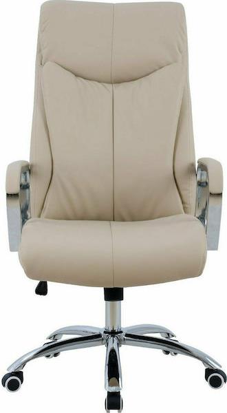 Καρέκλα γραφείου διευθυντική με μπράτσα και ανάκλιση από υψηλής ποιότητας PU σε εκρού χρώμα και μοναδικό design.