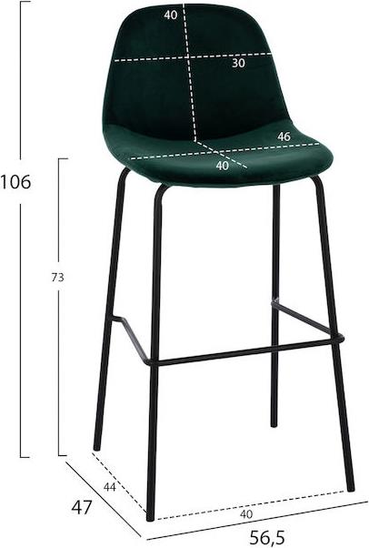 Το σκαμπό VINCENT είναι επενδυμένο με ύφασμα βελούδο και μεταλλικό σκελετό.