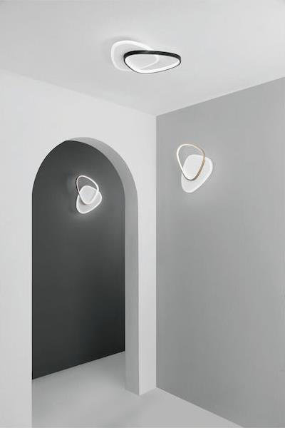 Μοντέρνα πλαφονιέρα οροφής σε χρυσό χρώμα, από μέταλλο. Διαθέτει ενσωματωμένο LED.