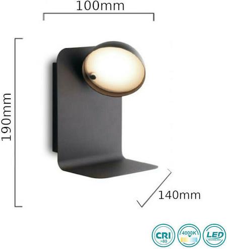 Μοντέρνο φωτιστικό τοίχου σε μαύρο χρώμα, με πλάτος 14εκ. Το ενσωματωμένο LED που διαθέτει εκπέμπει φυσικό λευκό φως που αποδίδεται στην κλίμακα Kelvin με τιμές από 4000Κ έως 5500Κ. Οι τόνοι του φυσικού λευκού μοιάζουν με το φως της ημέρας και δεν περιέχουν άλλες αποχρώσεις.