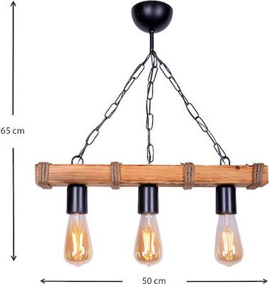 Φωτιστικό οροφής Mako Megapap E27 ξύλινο τρίφωτο χρώμα καρυδί/φυσικό 50x10x65εκ.