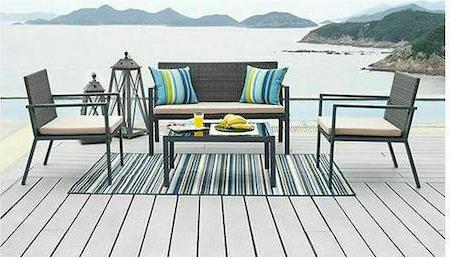 Το σετ έχει μεταλλικό σκελετό για καλύτερη σταθερότητα και επένδυση από wicker/rattan, ένα συνθετικό υλικό με μία ιδιαίτερη τεχνική πλέξης και με μεγάλη αντοχή στις εξωτερικές κλιματολογικές συνθήκες. Το τραπέζι διαθέτει γυαλί στην επιφάνεια.