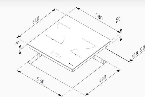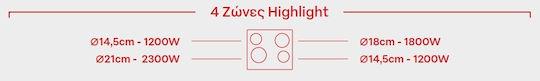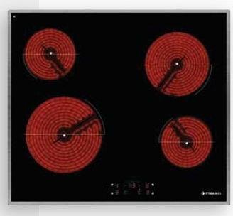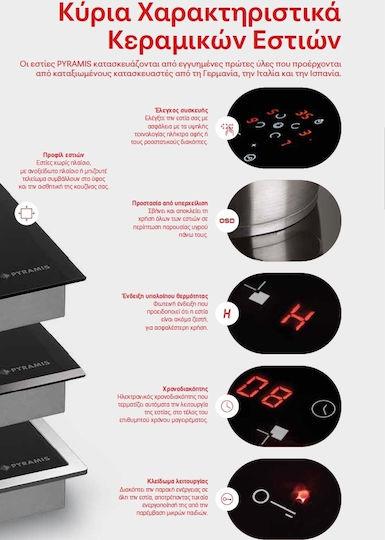 Εντοιχιζόμενη κεραμική εστία κουζίνας από τον κατασκευαστή Pyramis, με 4 ζώνες μαγειρέματος.