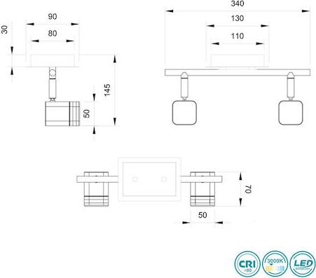 Η πηγή φωτός του είναι τεχνολογίας LED ισχύος 8W, φωτεινής ροής 800Lm, με θερμοκρασία χρώματος θερμό λευκό (Warm White) 3000K. Ο δείκτης χρωματικής απόδοσης (Color Rendering Index CRI) είναι μεγαλύτερος από 80 υποδηλώνει καλή απόδοση χρωμάτων.