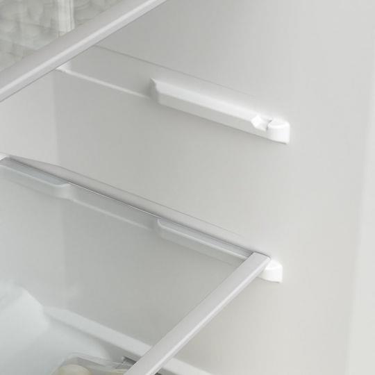 Ακόμα κι αν το ψυγείο σας είναι ακουμπισμένο στον τοίχο, ο ειδικός σχεδιασμός μεντεσέδων θα επιτρέψει στην πόρτα, καθώς και στα κουτιά φρούτων και λαχανικών, να ανοίξουν εντελώς.