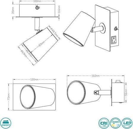 Η πηγή φωτός του είναι τεχνολογίας LED SMD ισχύος 6W, φωτεινής ροής 550Lm, με θερμοκρασία χρώματος θερμό λευκό (Warm White) 3000K. Το φωτιστικό διαθέτει ενσωματωμένο διακόπτη on/off.