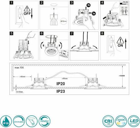 Για την σωστή εφαρμογή των χωνευτών φωτιστικών πρέπει να έχετε δείγμα του προϊόντος που πρόκειται να τοποθετήσετε πριν ξεκινήσετε τη διαδικασία "χώνευσης".
