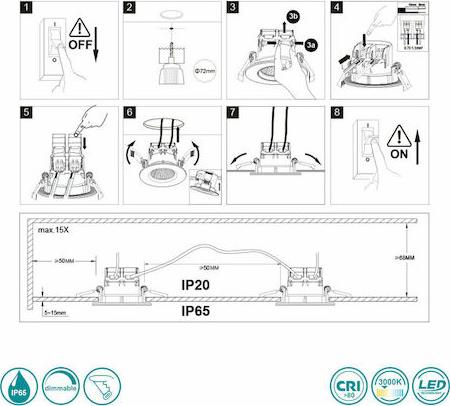 Για την σωστή εφαρμογή των χωνευτών φωτιστικών πρέπει να έχετε δείγμα του προϊόντος που πρόκειται να τοποθετήσετε πριν ξεκινήσετε τη διαδικασία "χώνευσης".