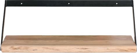 Wall-1 επιτοίχιο ράφι με μεταλλικούς βραχίονες βαμμένους σε μαύρο χρώμα και ράφι από μασιφ ξύλο ακακίας σε φυσικό χρώμα.